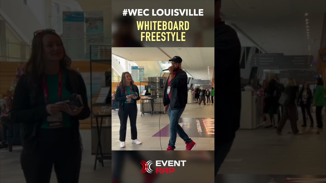 Event Rap artists perform pop-up freestyle sets at trade show exhibitor booths, on general session stages, at happy hour networking events, or any other location where engagement, enjoyment, and excitement are needed, rapping in response to audience prompts, names, and settings.